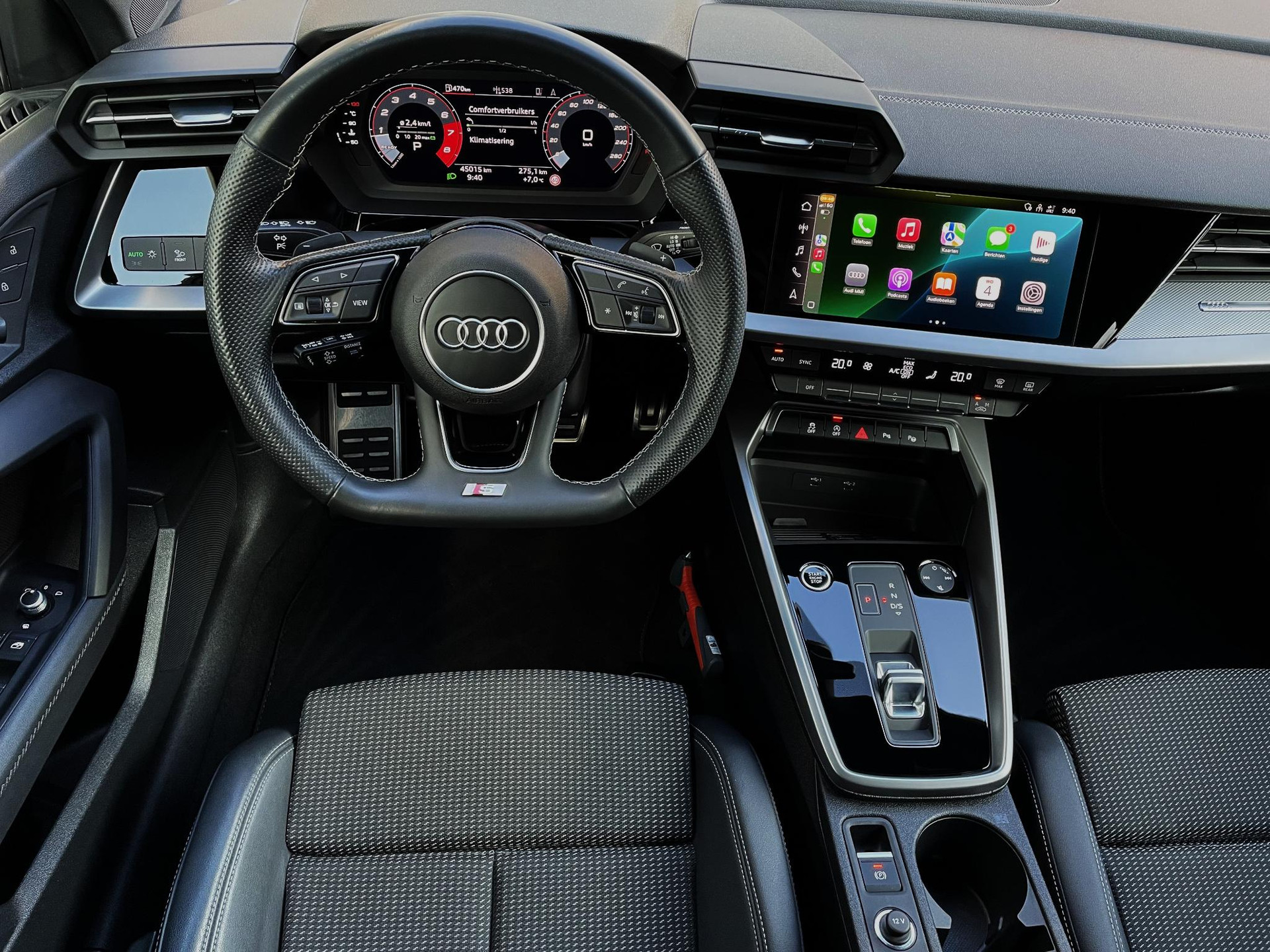 - Driespaaks lederen sportstuur, afgevlakt aan de onderzijde, multifunctioneel plus, met stuurpaddels