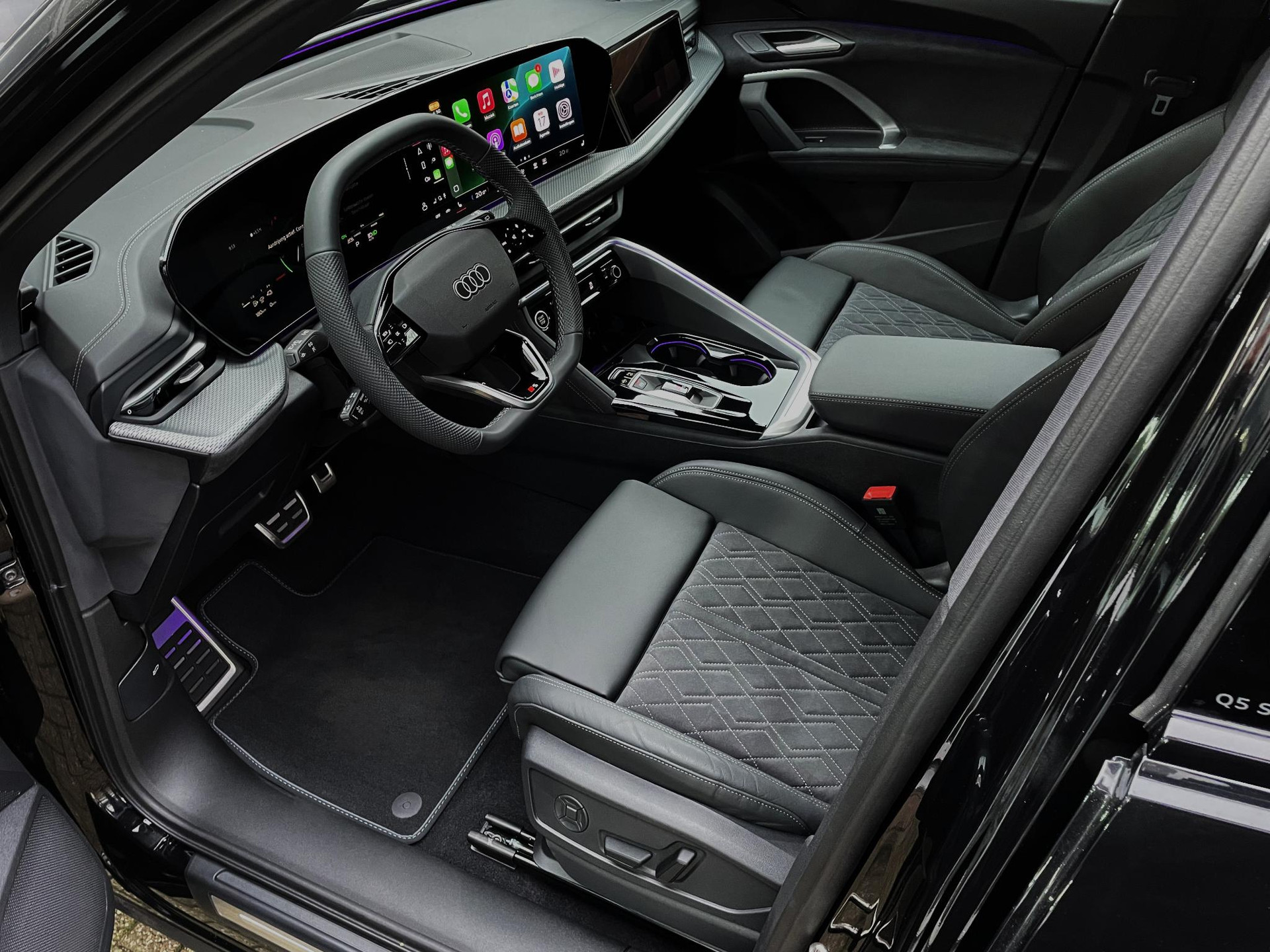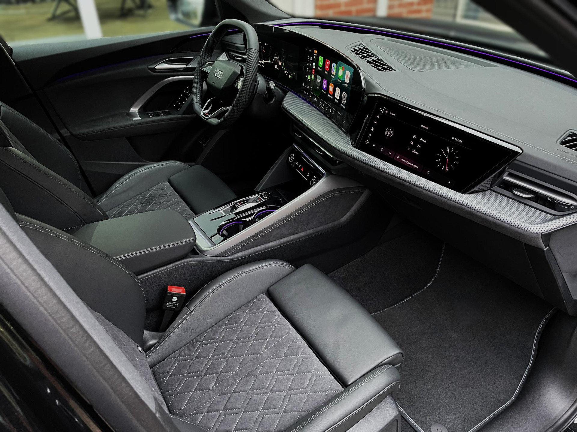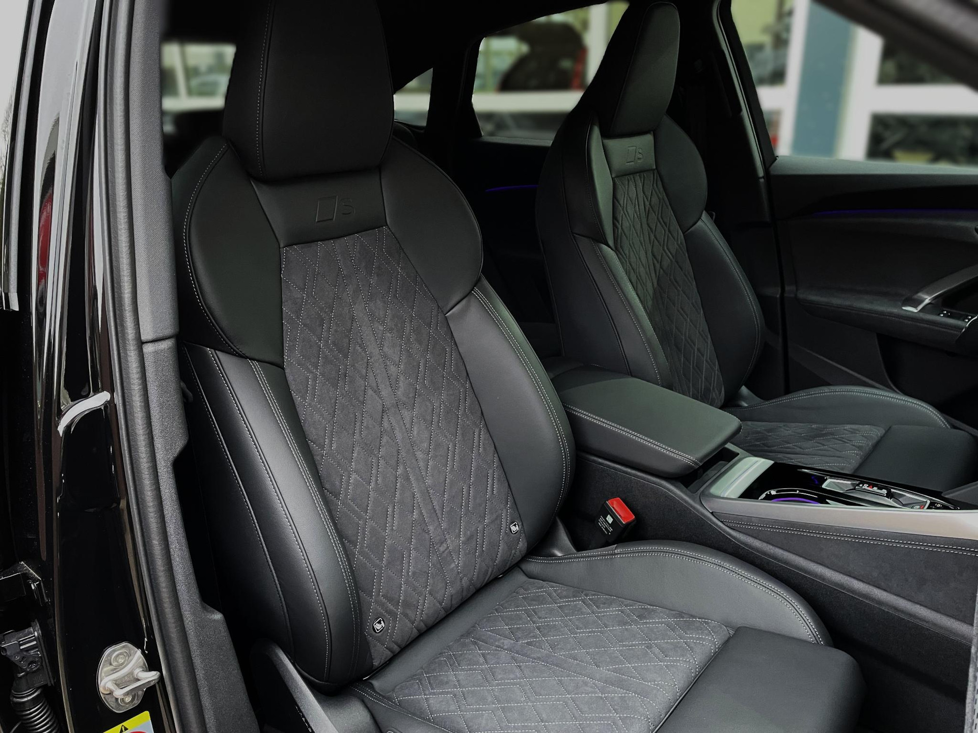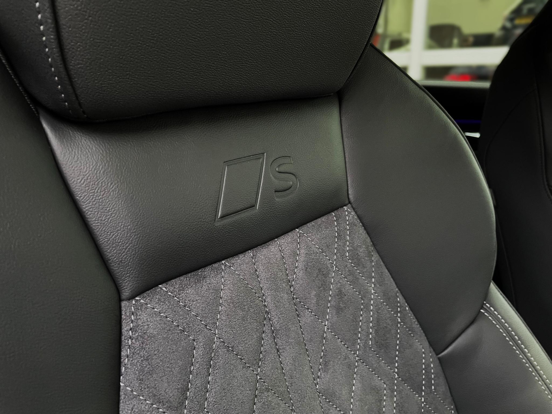 - S line interieur in zwarte Dinamica microvezel/leder combinatie