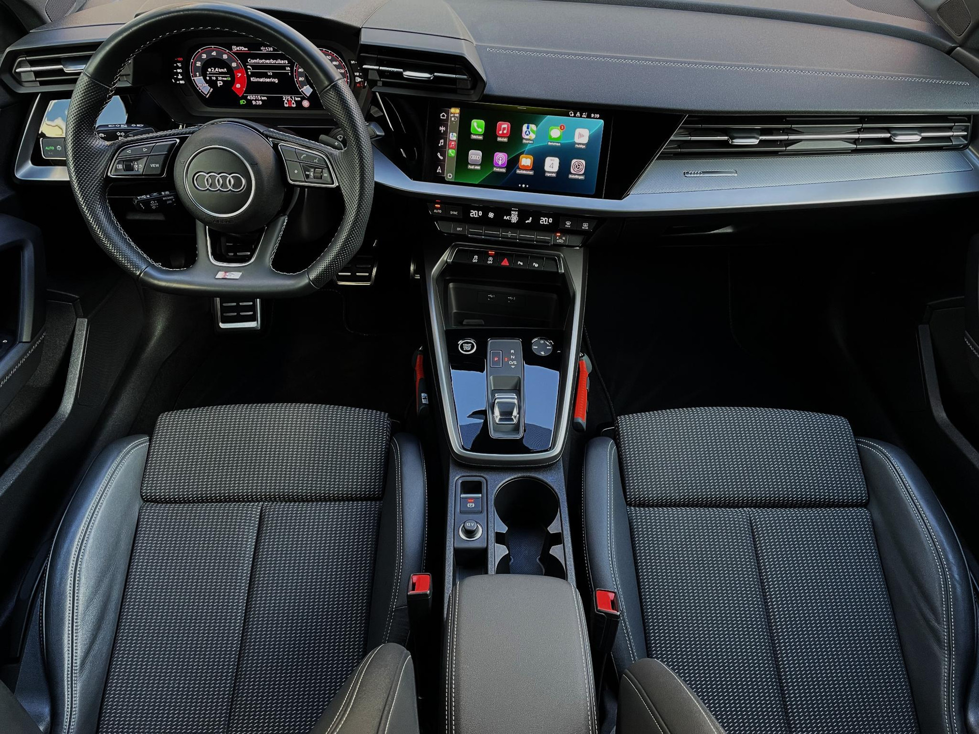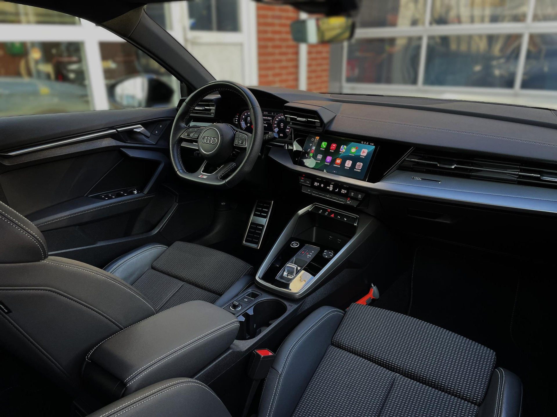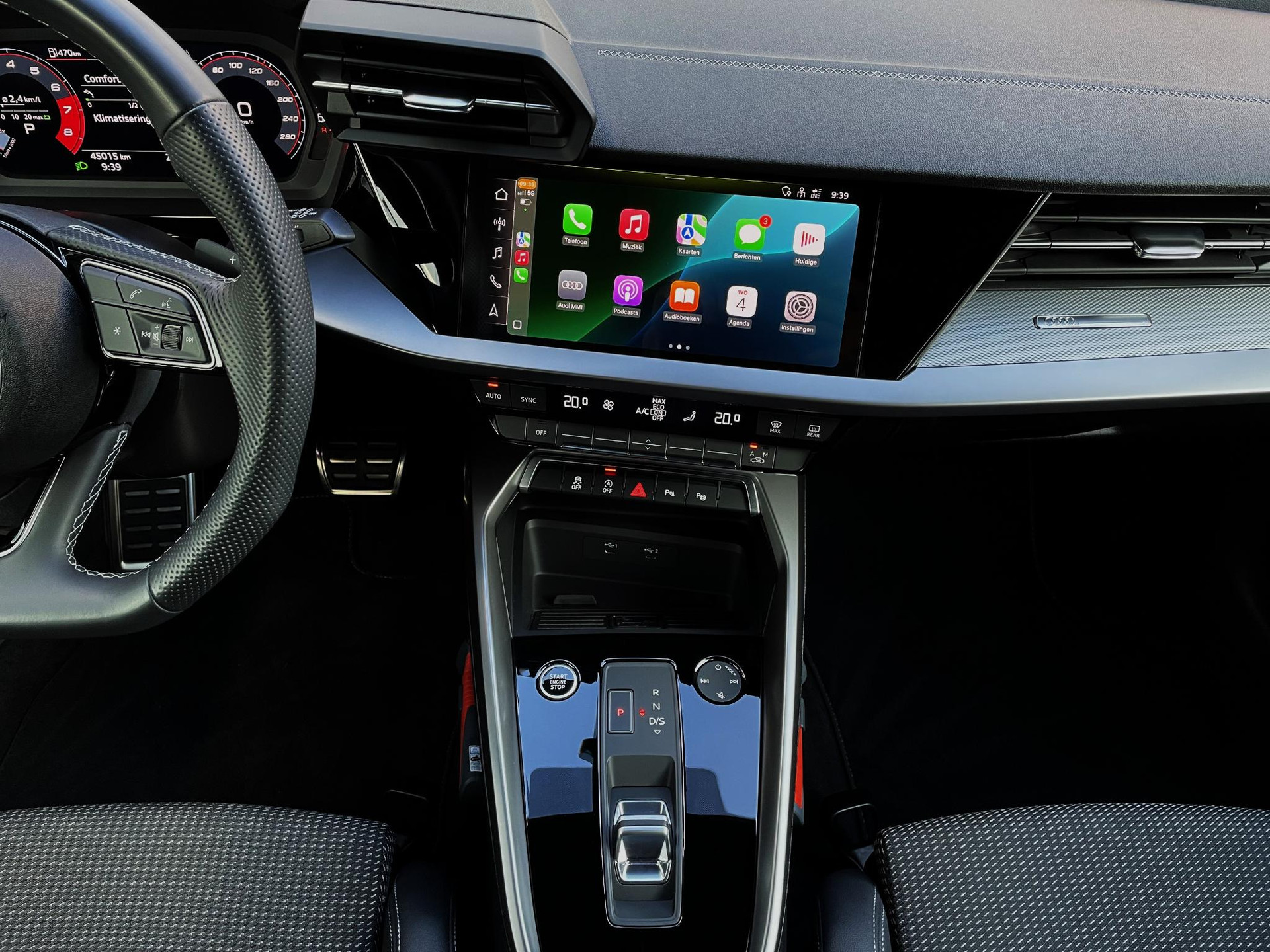 - Driespaaks lederen sportstuur, afgevlakt aan de onderzijde, multifunctioneel plus, met stuurpaddels